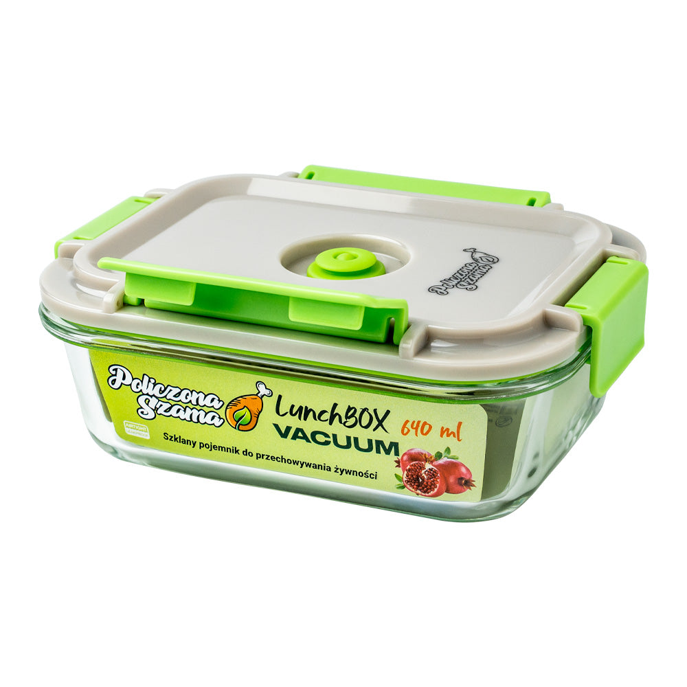 Pojemnik na żywność wykonany z wysokiej jakości szkła żaroodpornego oraz bambusowej pokrywy z uszczelką.