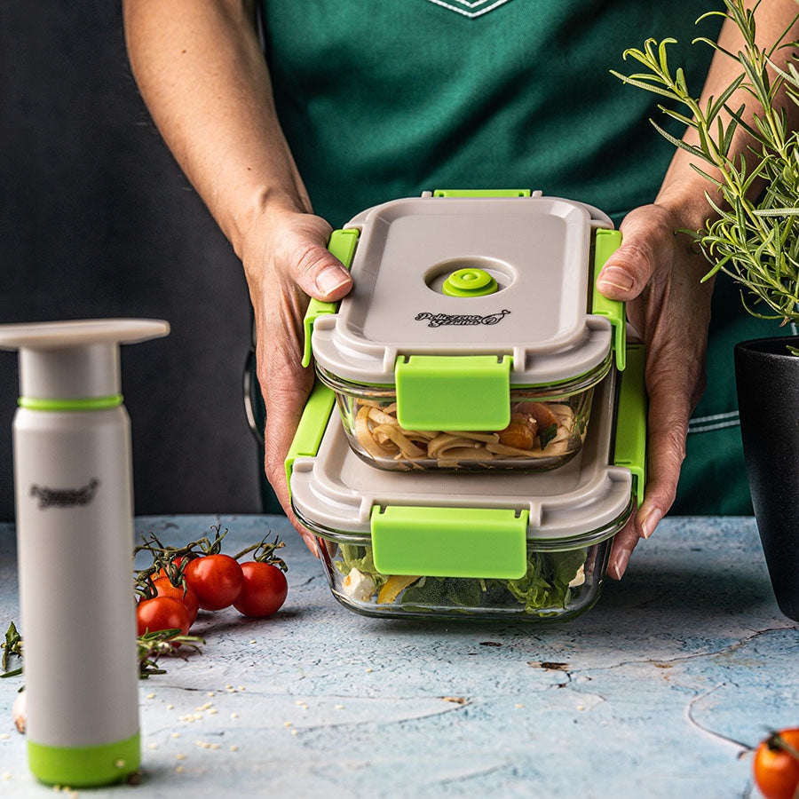 Najlepsze materiały do przechowywania Twoich dań, które długo pozostaną świeże bez przenikania zapachów i smaków w ścianki pojemnika. Szkło w tych pojemnikach jest przeznaczone do kontaktu z żywnością i jest wolne od BPA. Możesz podgrzewać swoje potrawy bezpośrednio wyjęte z lodówki - do tego są żaroodporne, więc nadają się do użycia w piekarniku, na kuchence gazowej czy mikrofalowej.